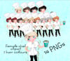 Female chef, cook, dinner lady etc. 7 hair colours, 2 eye colours. With a gold glitter overlay.