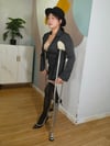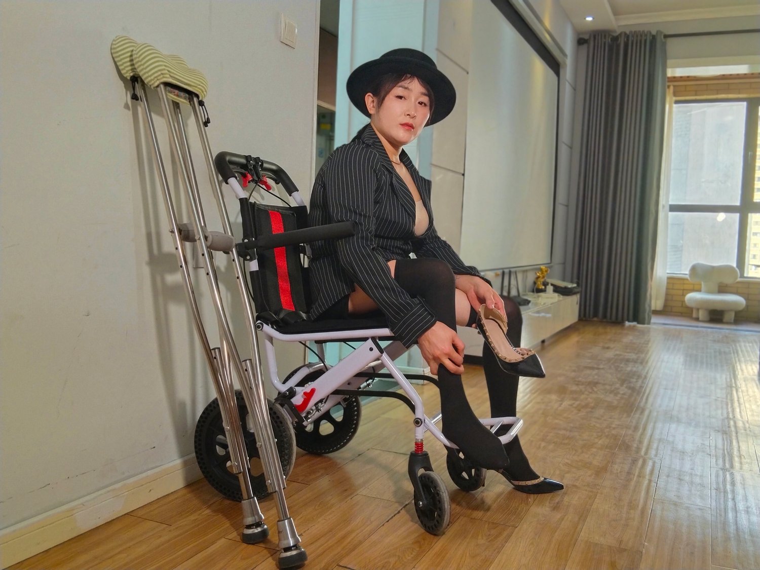 Rose's legs are unusually shaped; one leg is slightly thicker than the other, making her gait somewhat peculiar. She is unable to move without crutches. Today, she wore over-the-knee black stockings and a pair of beautiful high heels, making her legs look incredibly alluring.