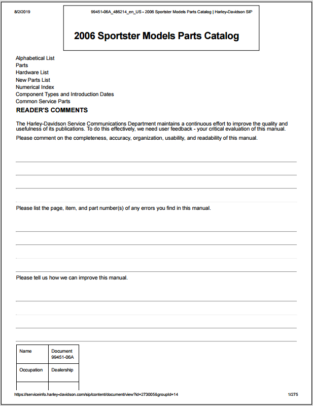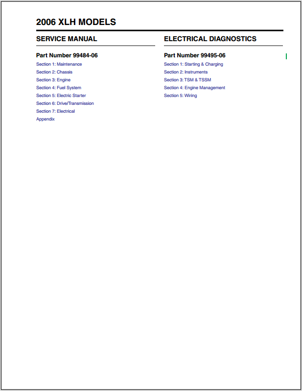 2006 Harley Davidson Sportster Models Service Manual Part No. 99484-06 - Electrical Diagnostic Manual Part No. 99495-06 - Parts Catalog Manual Part No. 99451-06A