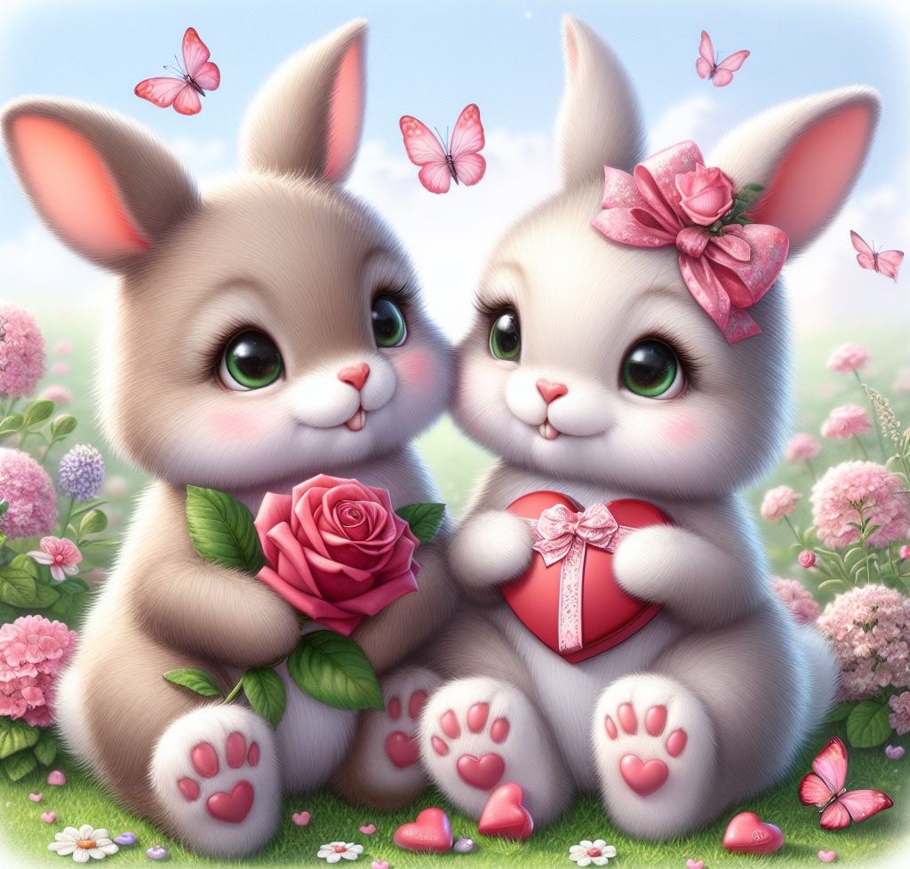 Valentine Rabbits Cross Stitch Pattern PDF Instant Download