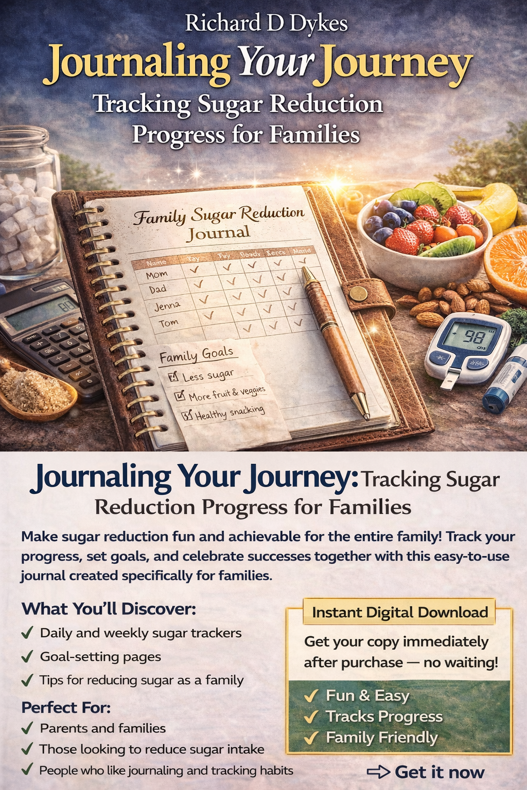 This easy-to-use journal helps families stay on track, set goals, and build better habits together while reducing sugar in a fun and practical way.