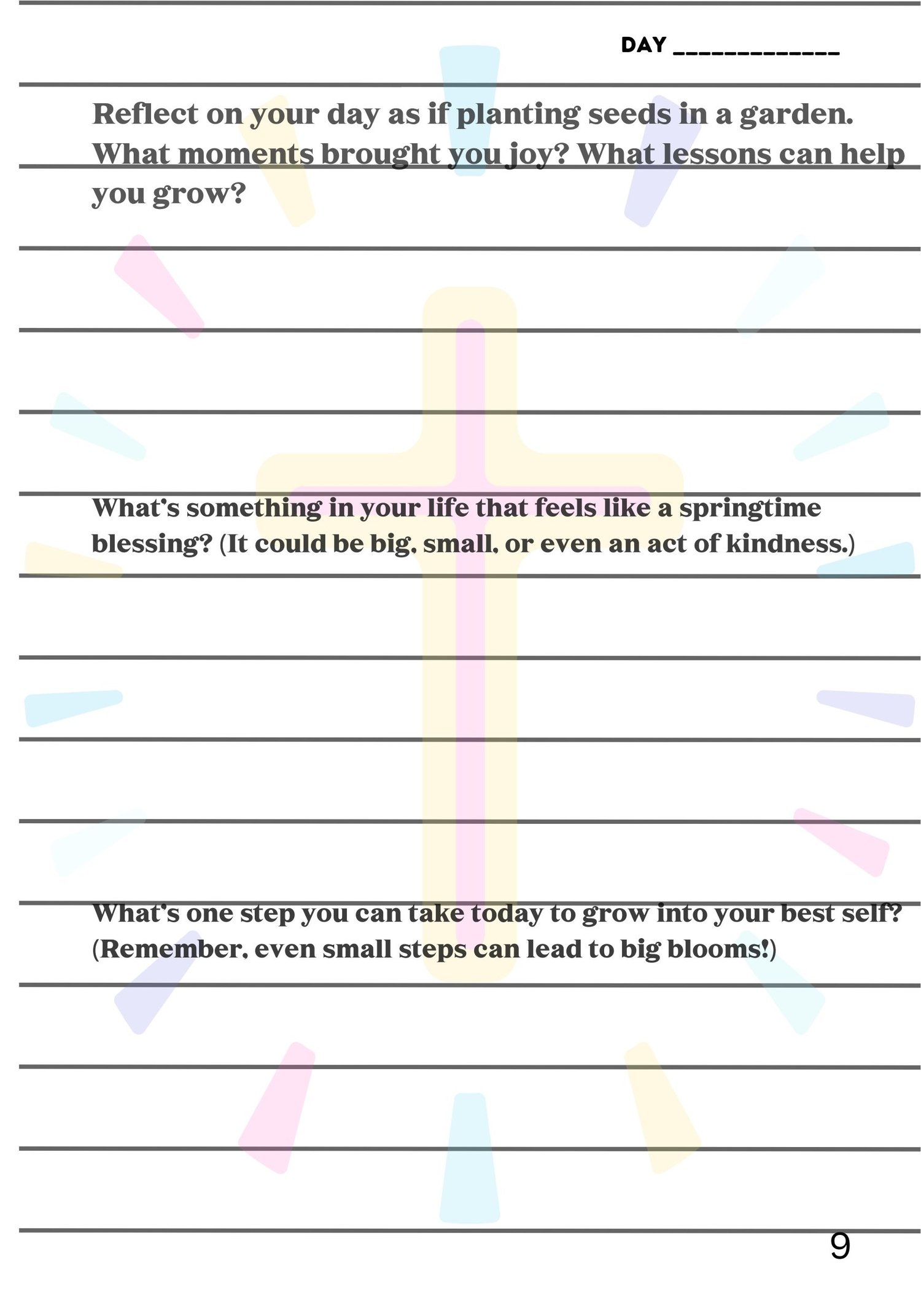 - Reflect on moments of gratitude, joy, and spiritual growth