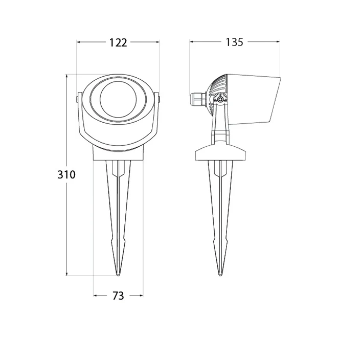 The Tommy Spike Spotlight by Fumagalli is a modern and durable outdoor lighting solution, designed to be installed directly in the ground with its integrated spike. Constructed in resin and polycarbonate, it ensures excellent resistance to weather conditions and long-lasting performance. This model includes a 6W GU10 bulb with CCT button, allowing you to choose between two color temperatures. With an IP66 protection rating, it is fully protected against dust and strong water jets, making it ideal for demanding outdoor environments.