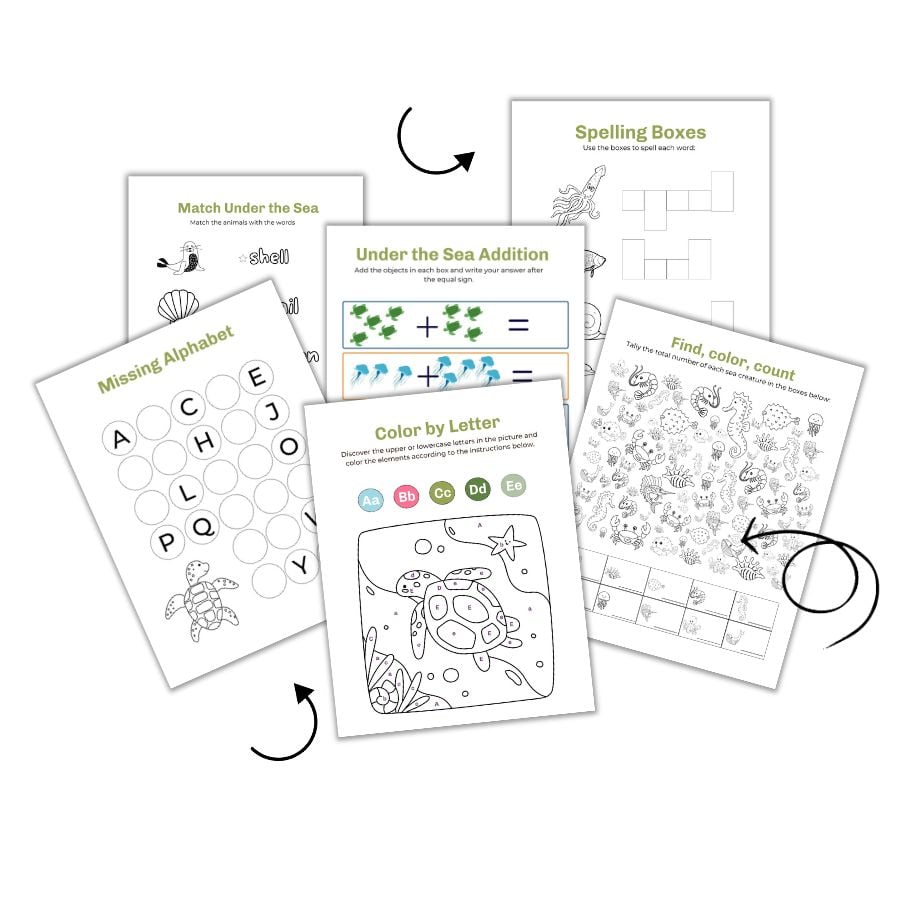 Under the Sea themed Preschool Worksheets