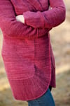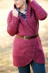 The cardigan is worked almost completely seamlessly to minimize finishing. You begin by casting on stitches for collar, along which you later pick up stitches for the body of the cardigan. Once the collar is joined to the body, the whole cardigan is worked back and forth until bottom hem. The sleeves are worked last. They are worked in the round and finished with vertical Garter cuffs. Choose from two lengths, depending on your preference: full length version or hip length version. There is also an optional belt worked in Garter stitch with I-cord finishing.