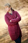 The cardigan is intended to be worn with about 2.5 cm / 1” of positive ease. Shown in size M on 93 cm / 37” bust.