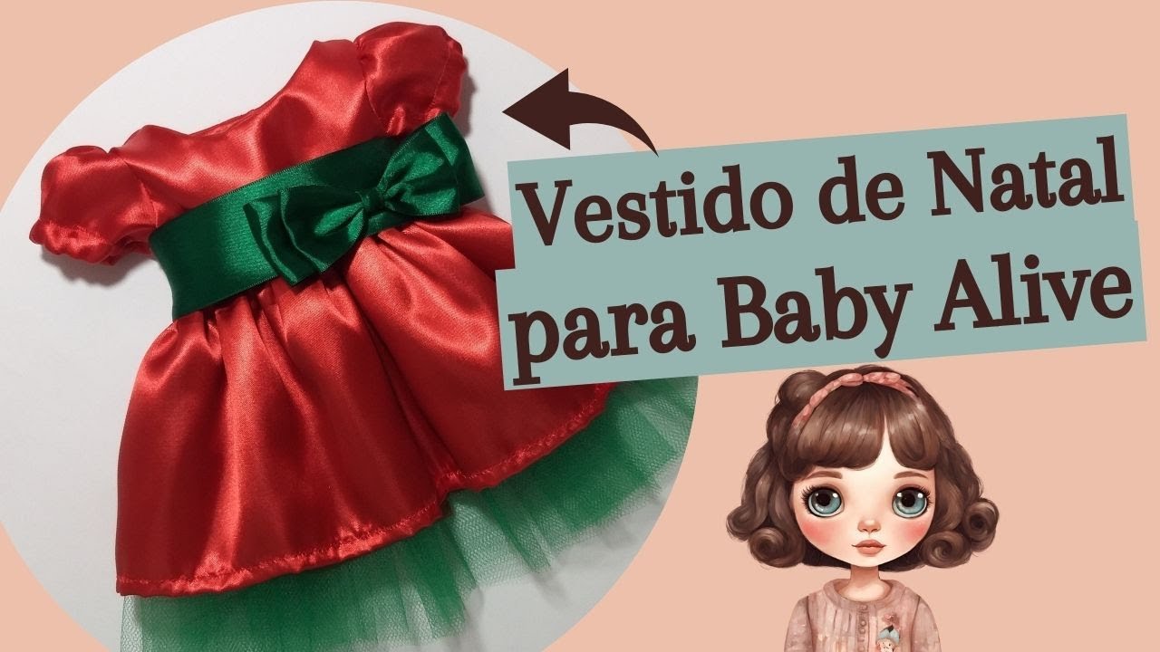 Molde - Vestido de Natal (Luxo) para bonecas Baby Alive e American Girl