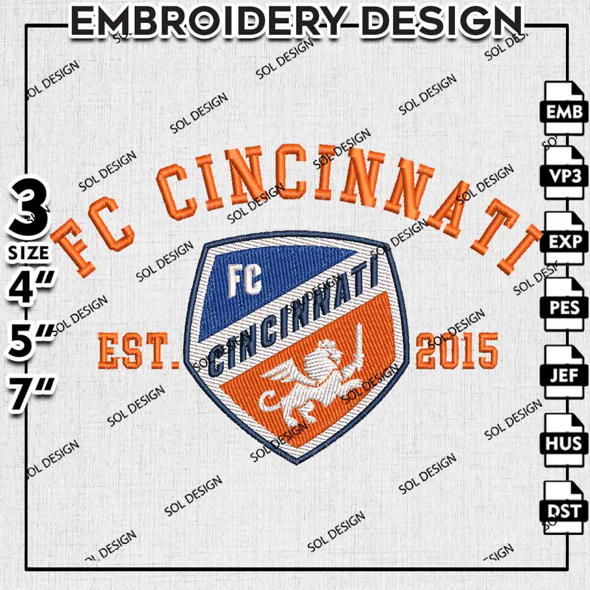 FC Cincinnati Est 2015 Logo Embroidery Designs, FC Cincinnati Embroidery Files, MLS FC Cincinnati Soccer Team Logo Embroidery, Major League Soccer Machine Embroidery Design, Digital Download