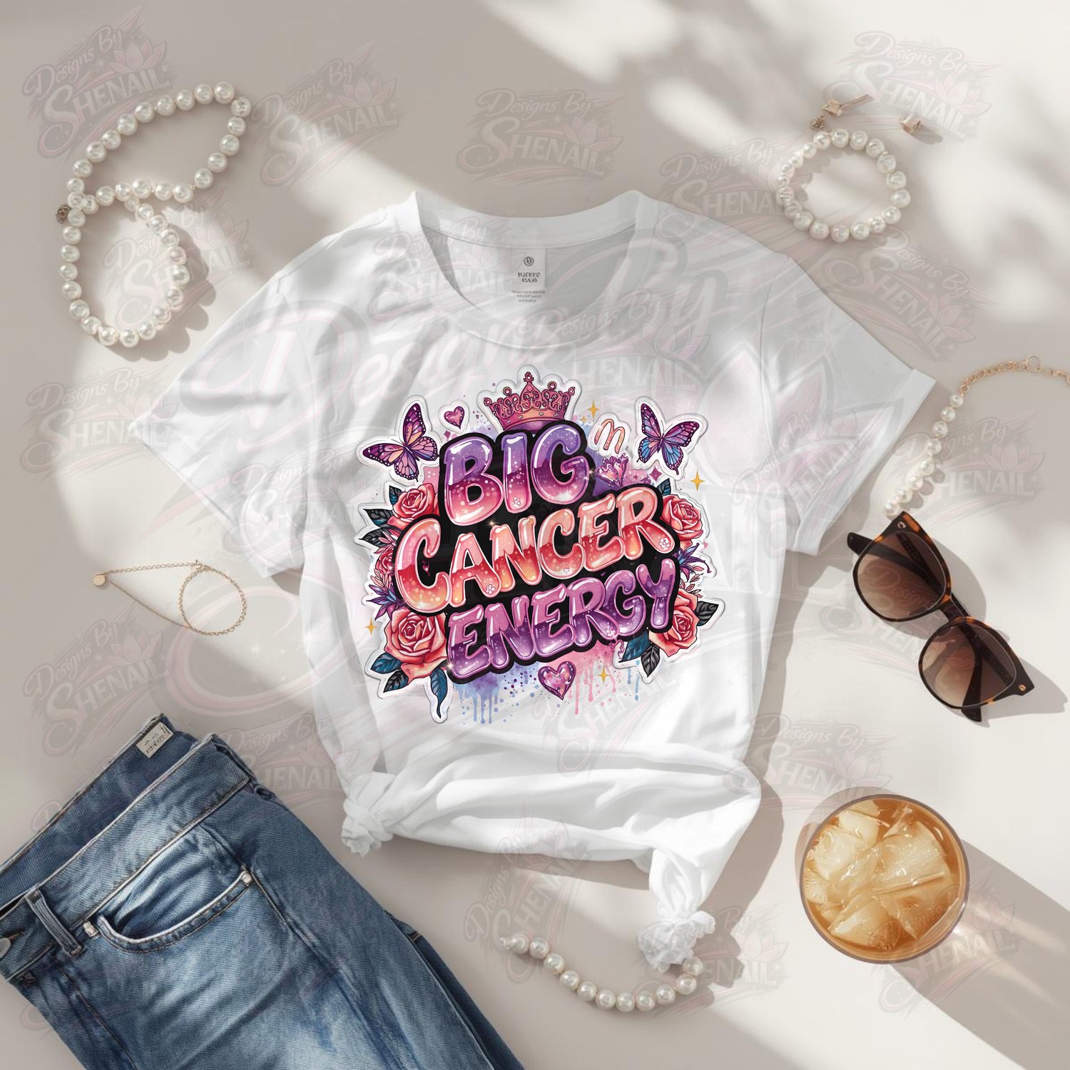 Celebrate your zodiac power with this bold and beautiful “Big Cancer Energy” design. Featuring dreamy pink and purple gradients, sparkling accents, butterflies, roses, and a crown detail, this artwork perfectly captures the emotional depth, strength, and soft luxury of Cancer energy.