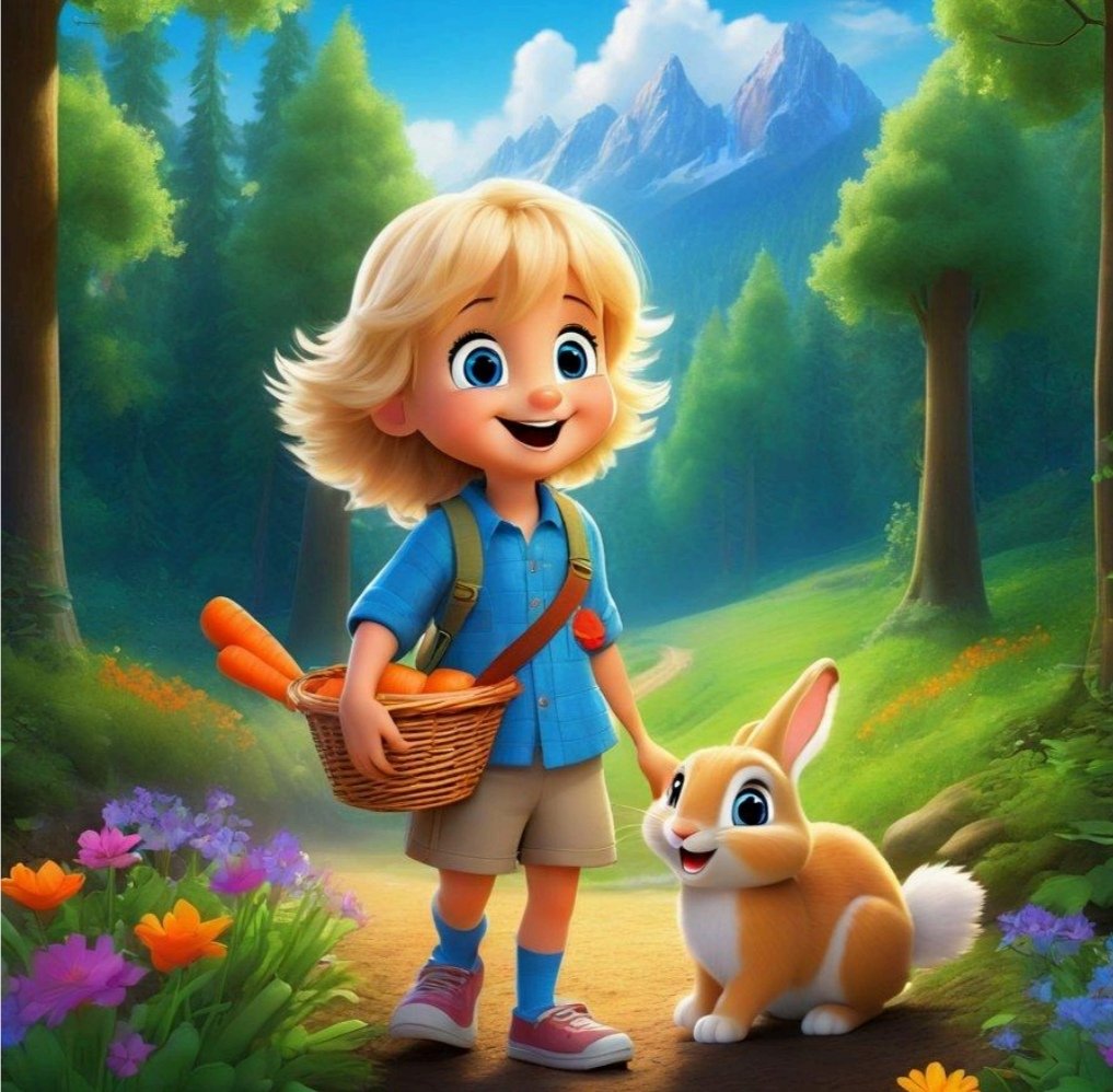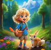 vibrant wildflowers, three best friends, Luna the rabbit,