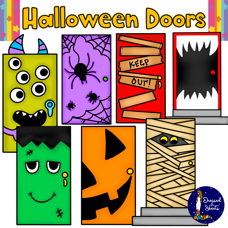 This pack has a franken door, a boarded door, monster eyes door, mummy door, monster mouth door, pumpkin door, and spider door. Which one will you go through? ;)