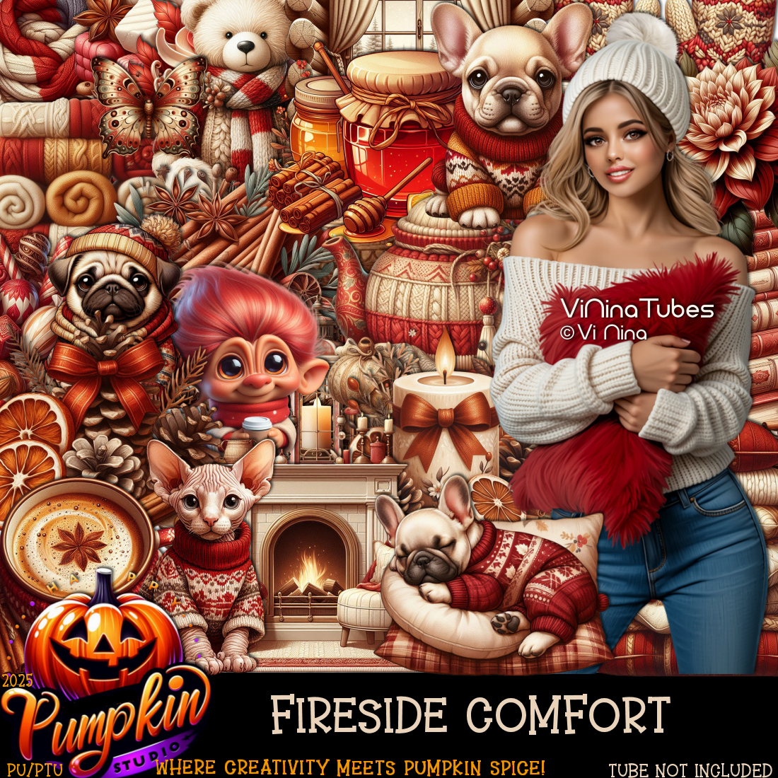 Bring the warmth of the hearth into your digital art with Fireside Comfort, a cozy kit designed to wrap your projects in softness, glow, and charm. This collection captures that perfect fireside moment — glowing embers, fuzzy pillows, warm knits, and gentle light that makes winter feel magical.