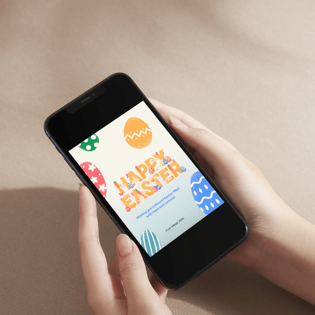 Featuring a colorful and cheerful design with Easter eggs and festive motifs, this template is perfect for sending wishes of rebirth and renewal to your family and friends. Whether you're planning an Easter party, inviting loved ones to a celebration, or simply sending a heartfelt message, this template makes it easy to customize with your own text. Download, edit, and print, or send as a digital message for a quick and thoughtful way to connect this April.