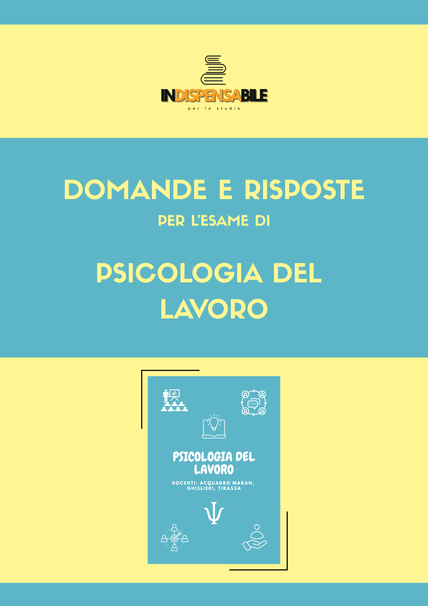 Questo file di Domande & Risposte fa parte dei materiali di studio realizzati da INDISPENSABILE per il corso di Psicologia del Lavoro (Università degli Studi di Torino, Scienze e Tecniche Psicologiche, 3° anno – 8 CFU).