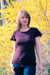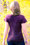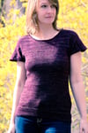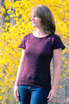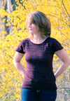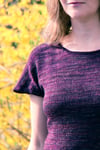 Construction: Helena’s Folly is meant to drape gracefully from shoulder to high hip, and is knit with no body shaping; length may be added or subtracted by knitting more or fewer rows anywhere between the bottom hem and the armhole. Knit in the round from the bottom up with a turned hem, front and back are divided at the armholes and then worked separately to the shoulder, where they are finished with a 3-needle bind off. The front and back neck shaping is accomplished with short rows, so that the front and back are each knit with one continuous strand; neck edge stitches are kept live, and the turned neck edge is worked directly from them.