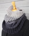 It’s a great way to use a gradient kit or to use up sport weight leftovers in various colors. Or you could forgo the color changes and make it out of one big squishy skein. The instructions are written for a cowl that is long enough to pull up as a hood if a cold wind blows, but can easily be adapted to a shorter or even longer cowl. The pattern includes info for how to do so, and how to substitute for the gradient sets used in the samples.