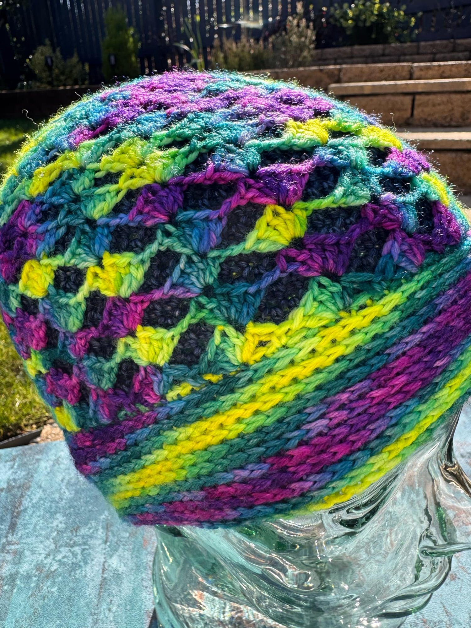 crochet a lace overlay. With careful weaving in of ends this hat becomes reversible.