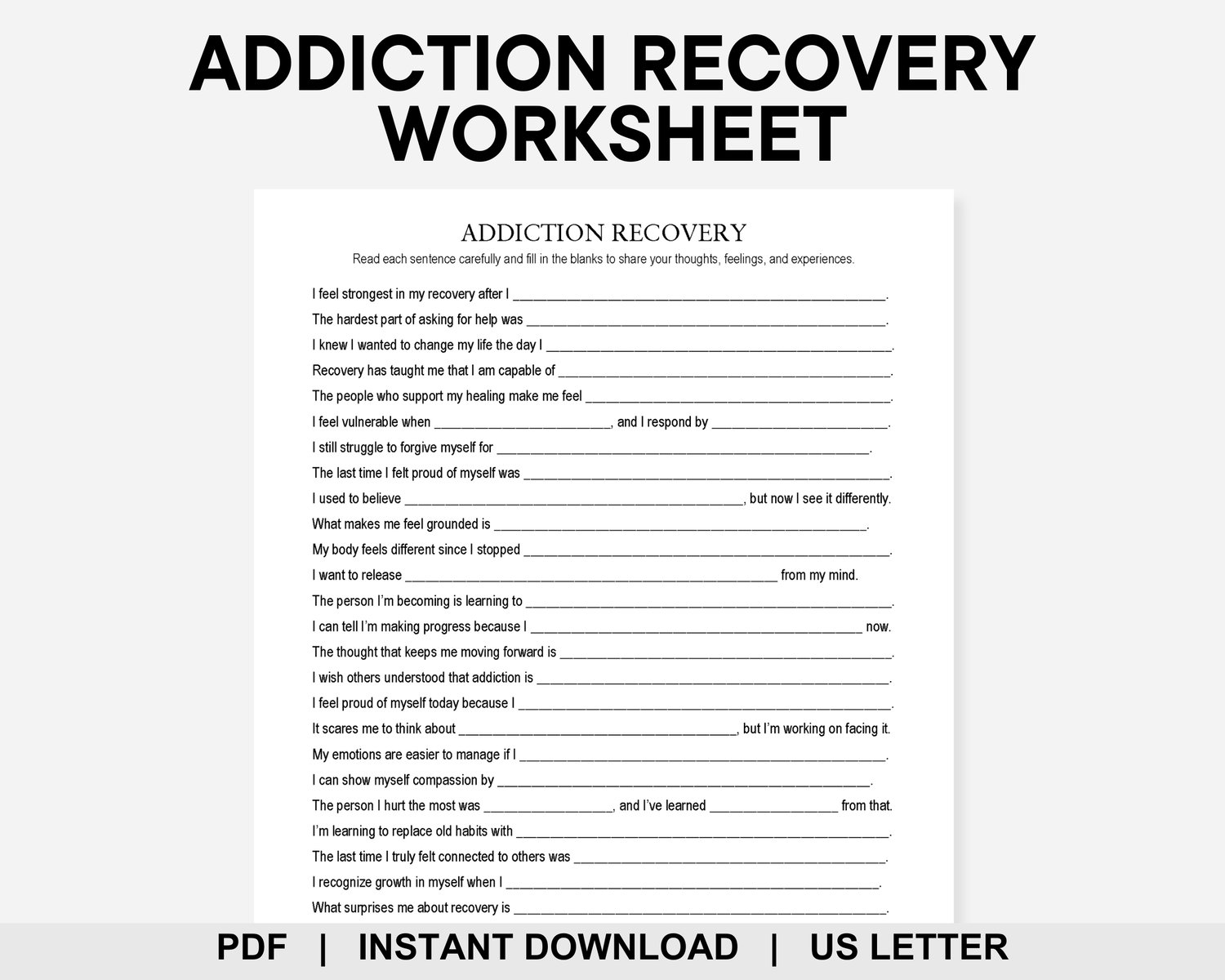 Addiction Recovery Worksheet, Addiction Management, Addiction Support, Relapse Prevention, Emotional Check In, Coping Skills, Sobriety