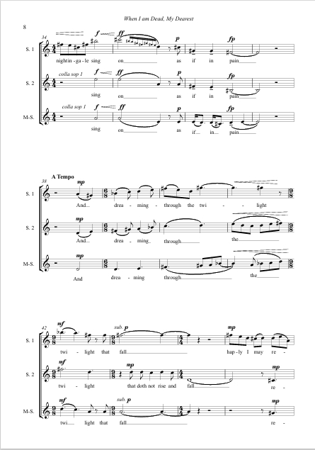This song, When I am Dead, My Dearest, is the fourth and final in the song cycle. The other songs are Remember Me, Song, and Echo.