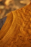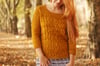 Merigold is a bottom-up, seamless cabled pullover with eye-catching details. Sides of the sweater are decorated with slits and the buttons. On the arm line you can find a interesting seam, which extends all the way to the sleeves cuff. Everything is finished with nice looking ribs!