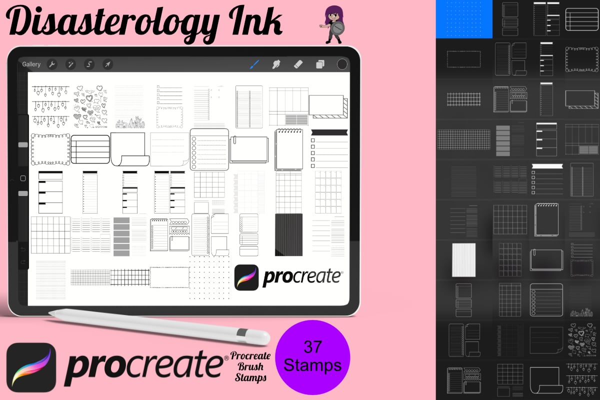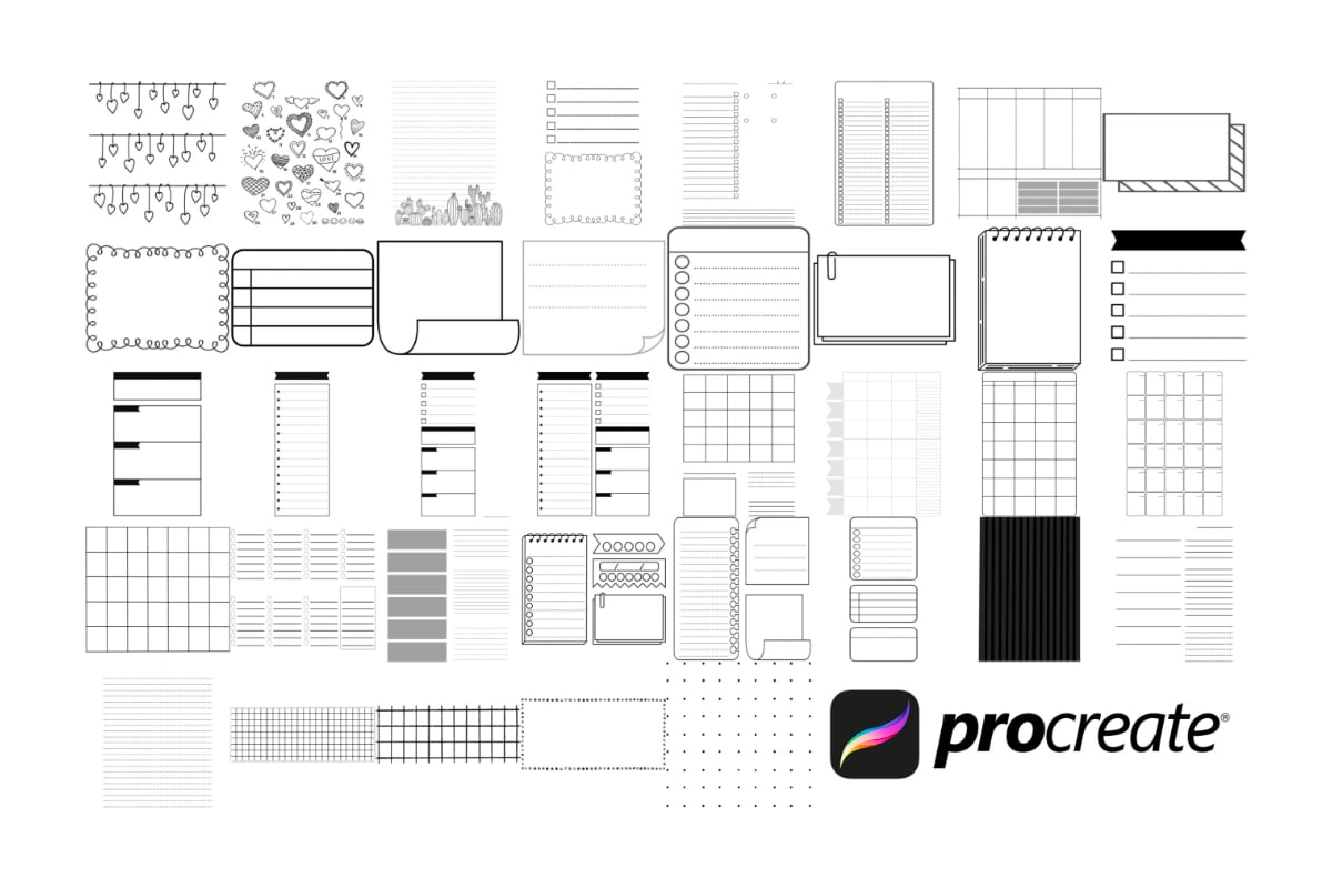 Planner Guide Template Set 1 Procreate Brush Stamps, 37 Planner Templates