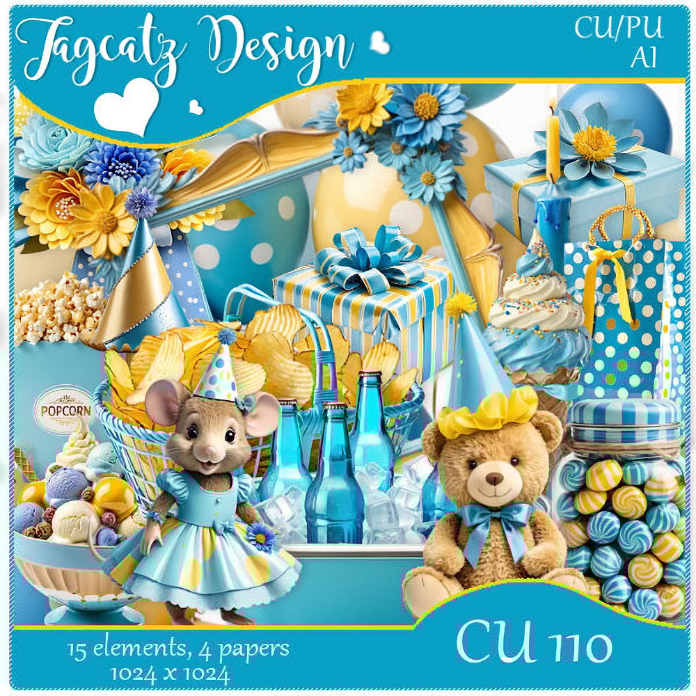 15 elements and 4 papers with a party theme. 1024 x 1024. AI product. CU/PU pack.
