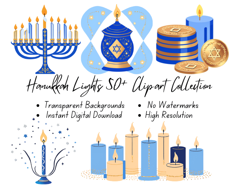 Hanukkah Lights 50+ Clipart Collection | High-Resolution Digital Printables | Instant Download | No Watermark