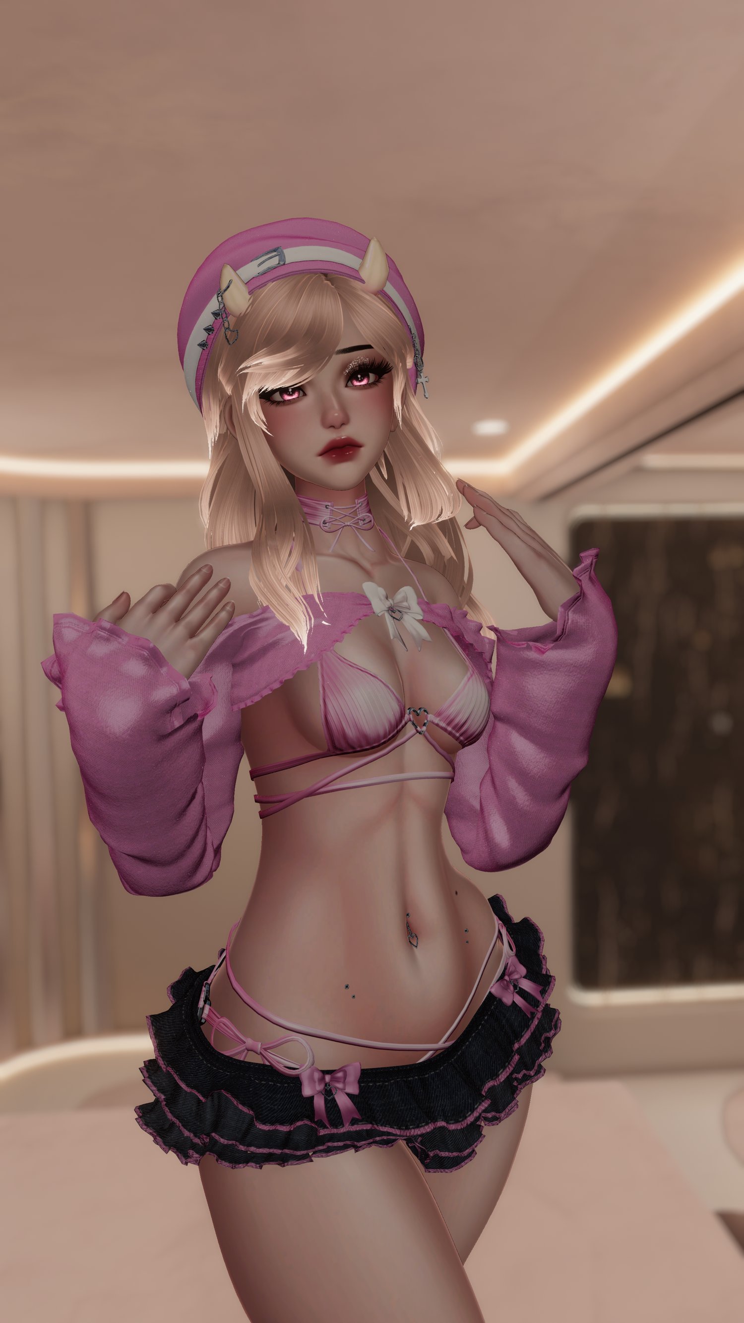 Body - edited by me. NO REUSE Bikini Head Dress Eye Text Horns Heels Main Outfit dalihia hair/beret MENU ICONS | 447 pieces - maddiee