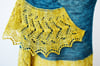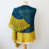 One size – finished dimensions of the sample Sunglow Forest shawl: 188 cm (74 inches) along the upper edge and a depth of 63 cm (24 ¾ inches), measured after blocking.