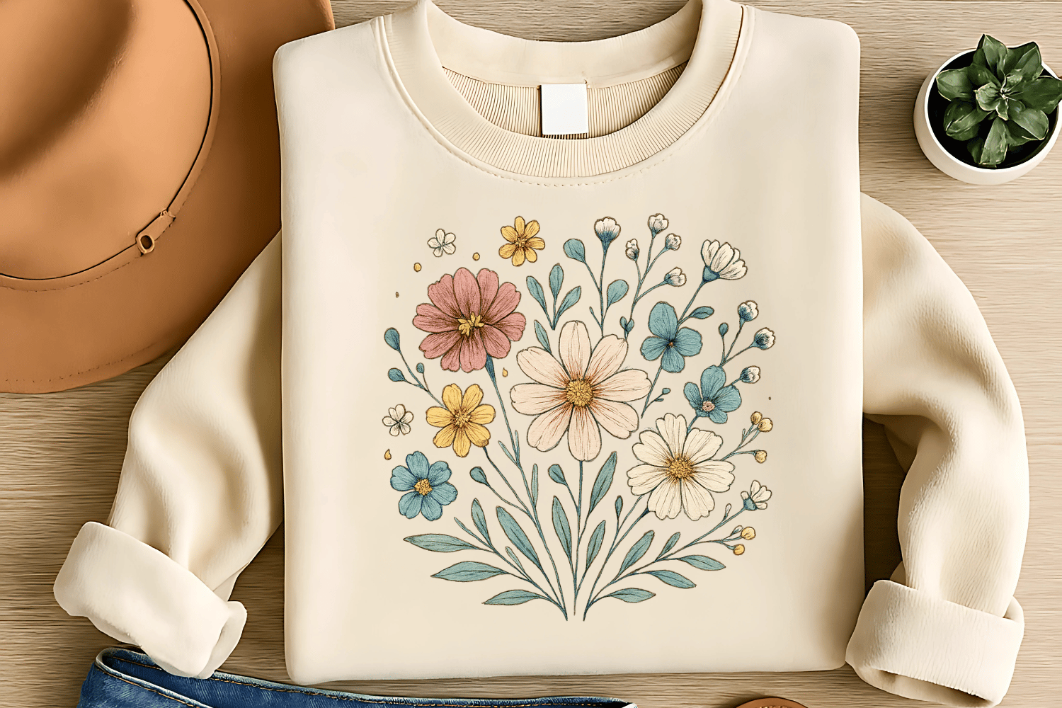 Floral Wildflower Spring Sublimation PNG – Natural Wildflower Clipart for T-Shirts – Fresh & Earthy Seasonal Design – 300 DPI Instant Digital Download