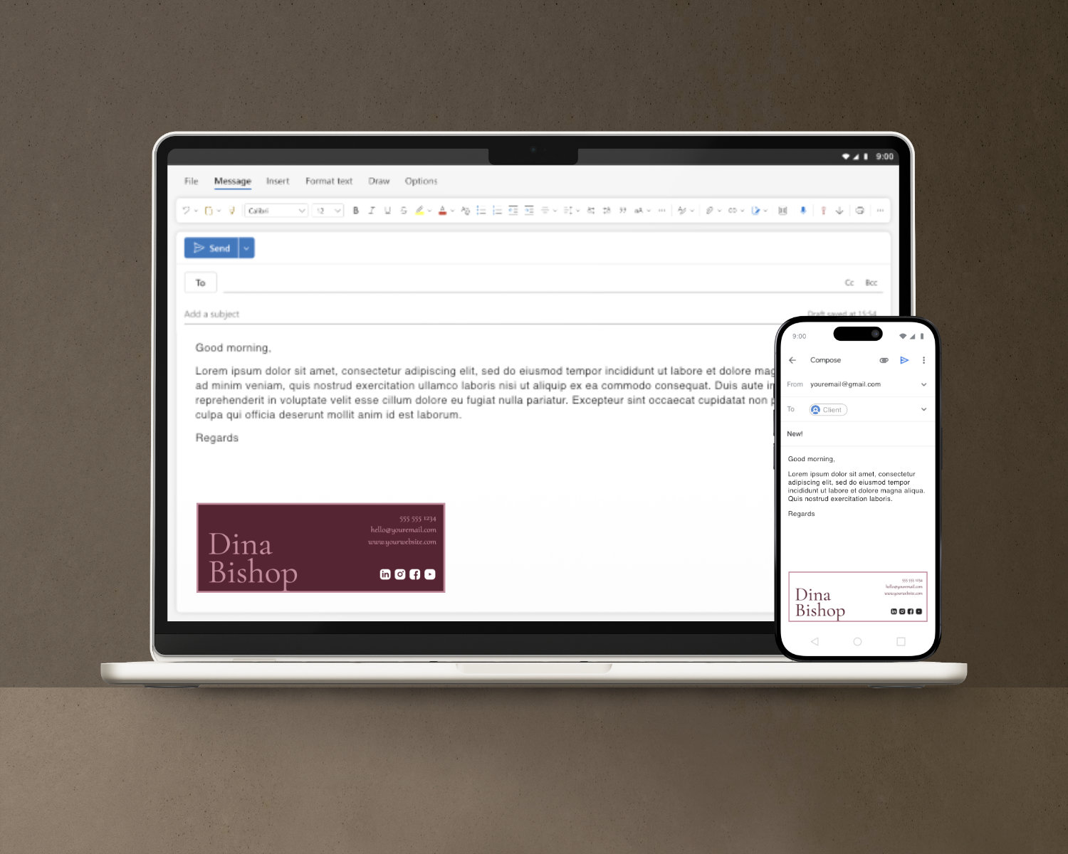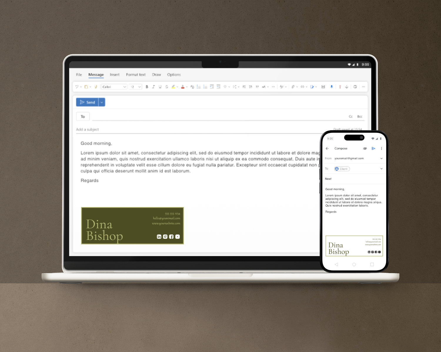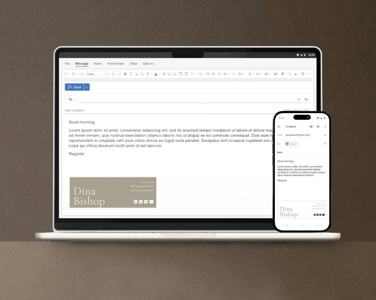 Wellness Email Signature Template – Dark Minimal, Gmail & Outlook