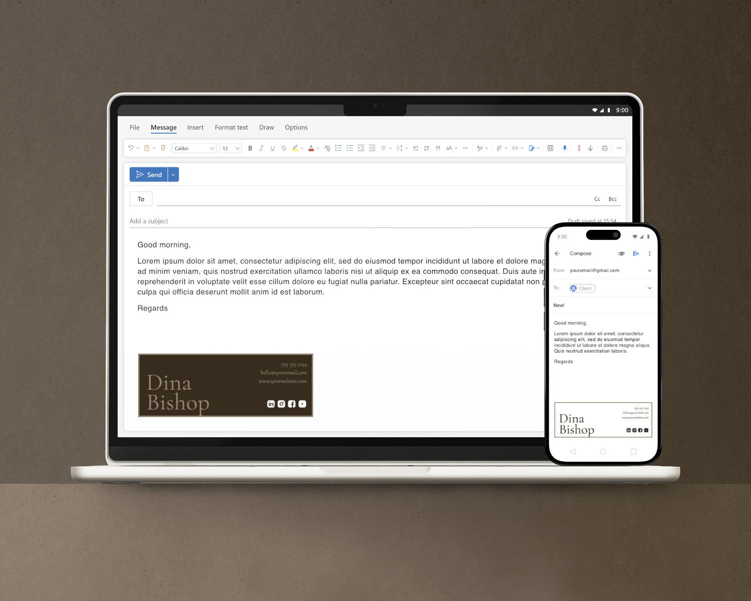 This editable email signature template for Gmail and Outlook is designed for wellness professionals who want a calm and consistent email presence. The dark design and soft typography support a professional yet approachable tone.
