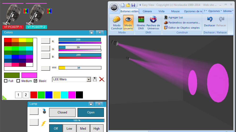 Esta Librería SSL2 está optimizada para trabajar con Magic 3d Easy View. Es decir para ver una representación 3D de las secuencias que estemos realizando con Freestyler, QLC+ o cualquier otro soft que se conecte con Magic 3d.