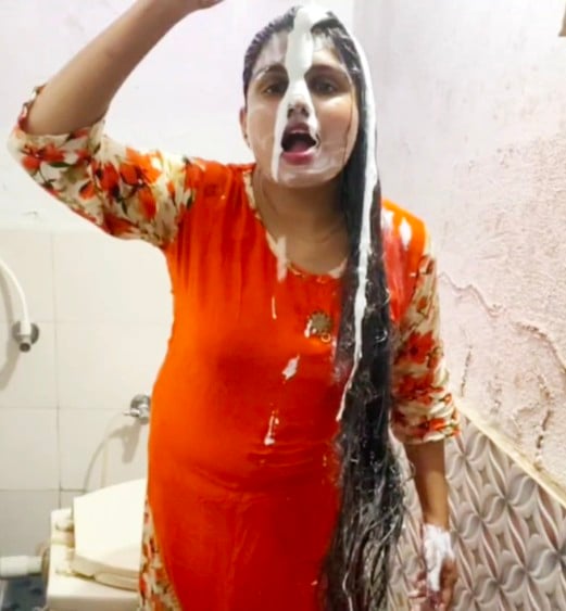 1 litre Whipping cream #hairwash #shampooing #wethair #hairplay