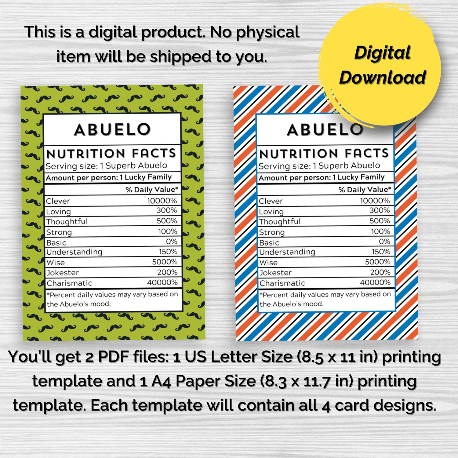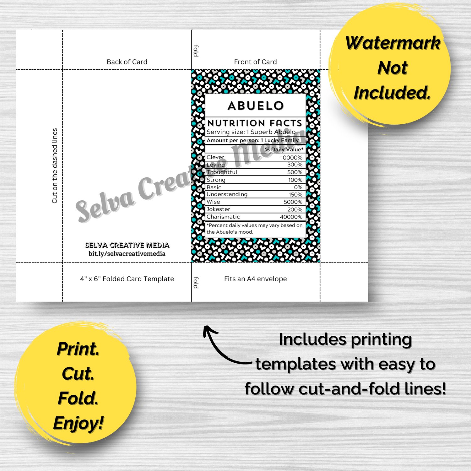 Give Abuelo the gift of joy, wrapped in our unique printable cards that will make him smile and chuckle.
