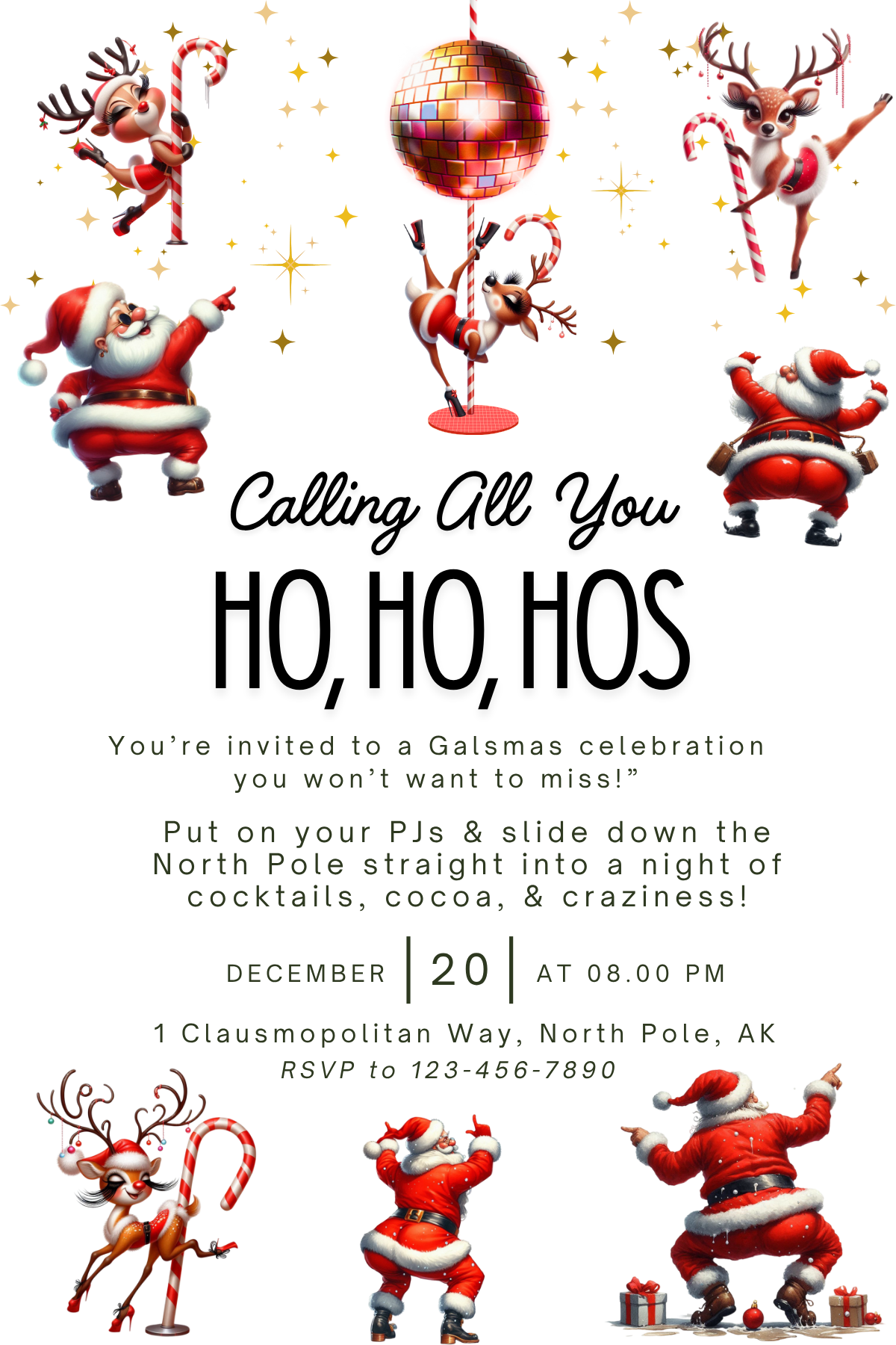 Ho, Ho, Hos Digital Galsmas Invite (Printable)
