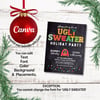 This Ugly Sweater Christmas card invitation template is a digital product that is easy to personalize using the friendly user and free program CANVA. Use this template to edit most fonts, font color, text, resize or move things around to your preference.