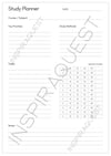 Make study time simple and effective. This planner lets you track your subjects, set your top priorities, plan your study methods, mark how much time you actually studied, and jot down notes, all in one place.