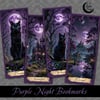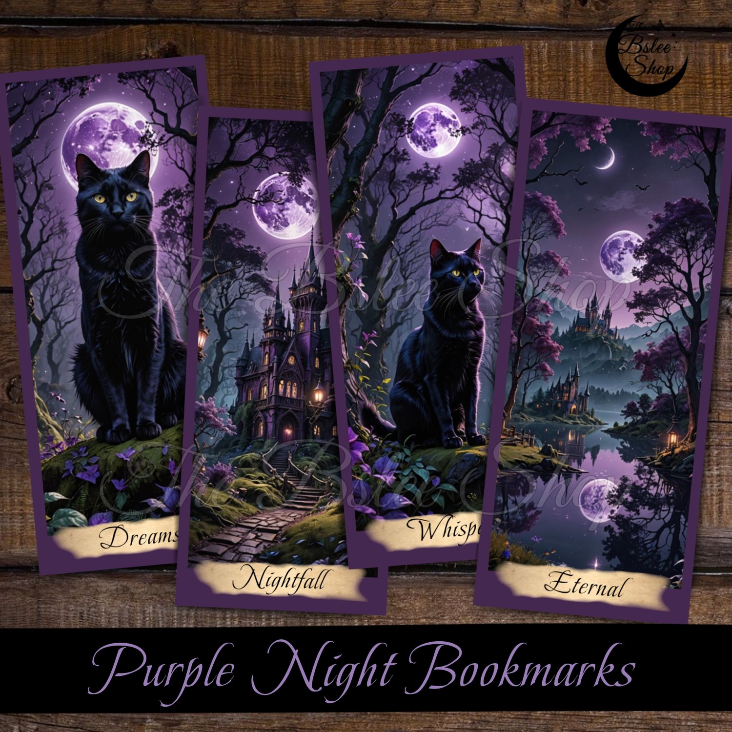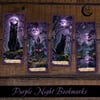 Mystic Purple Bookmarks, Black Cat Bookmarks, Nightfall, Gothic Whimsical Tags, Moon Scrapbooking, Dark Fantasy Art, Halloween Cards