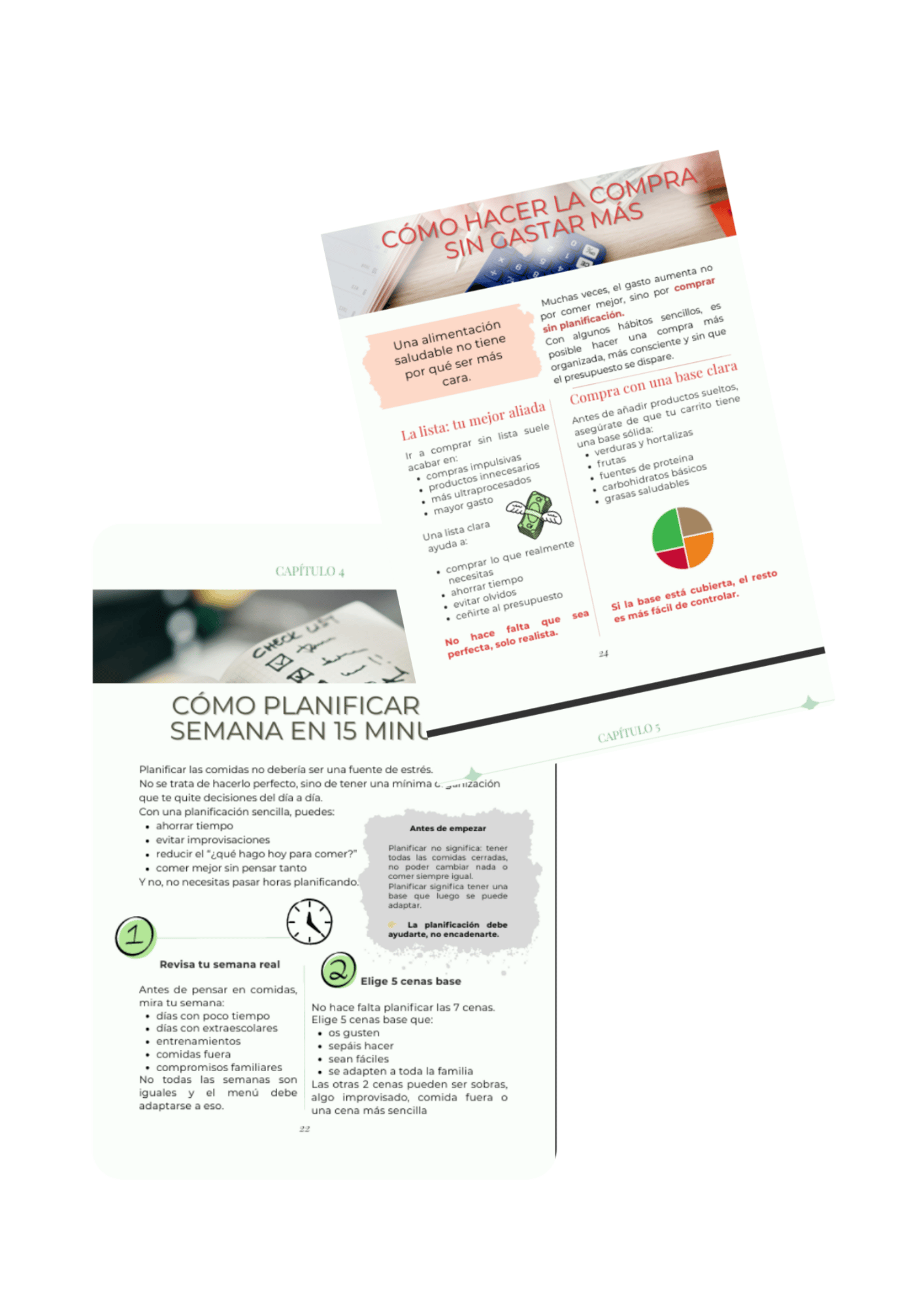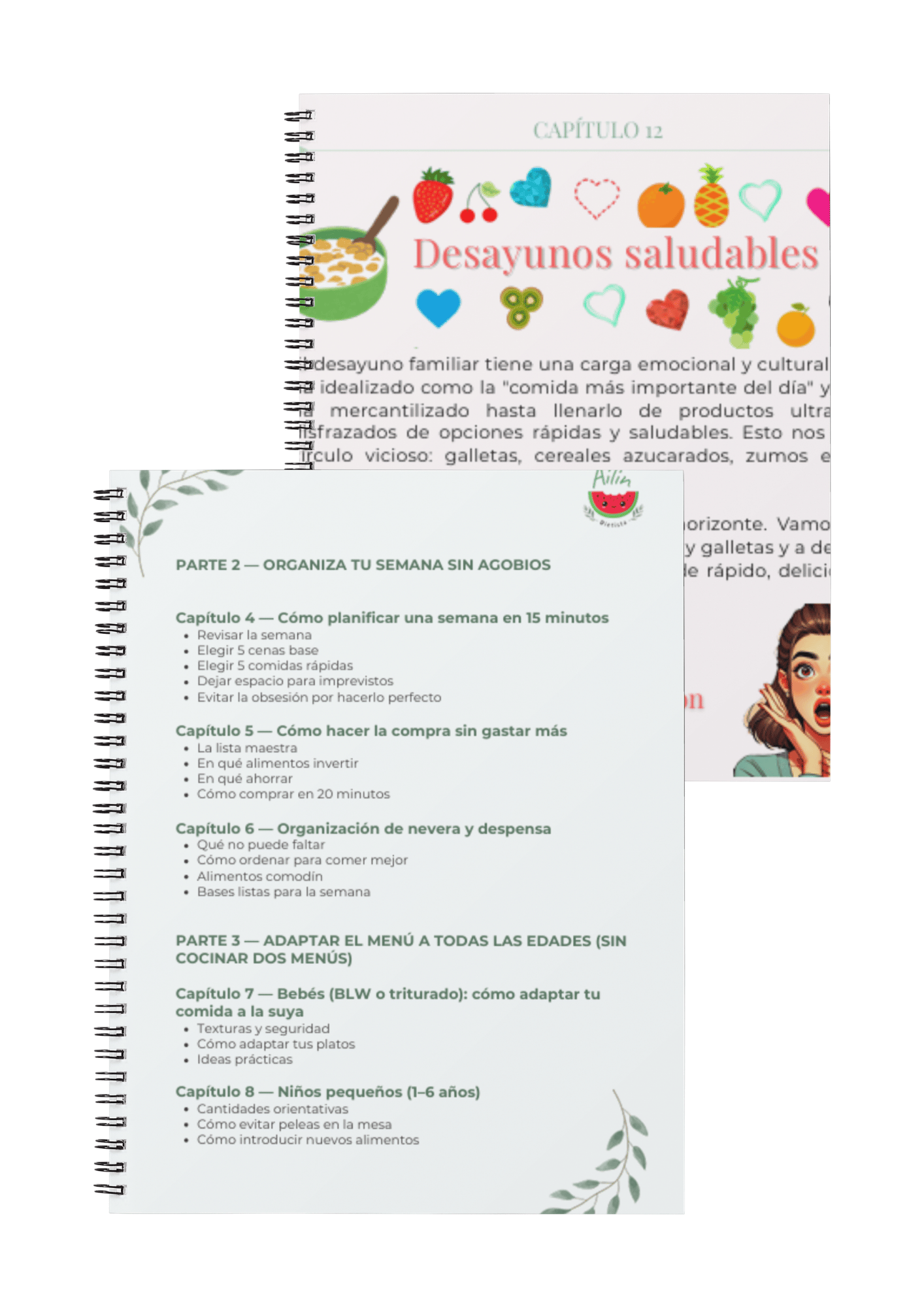 Incluye explicaciones claras, ejemplos reales de comidas y cenas rápidas, desayunos y meriendas saludables, plantillas imprimibles y estrategias aplicables desde el primer día.
