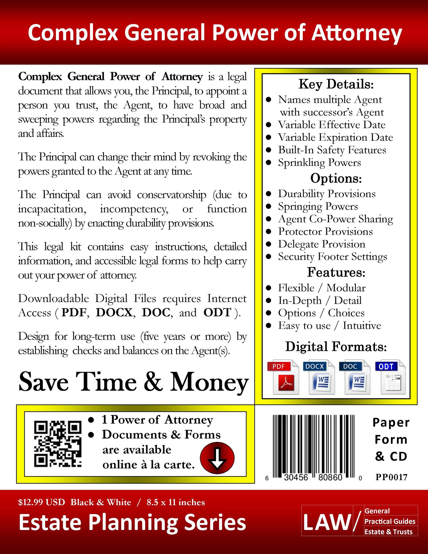 This Power of Attorney has an estate planning focus that provides options, depth, and flexibility while maintaining uniformity with built-in and optional safety features.