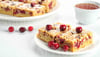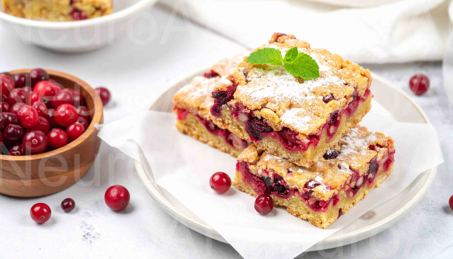 Delicious cranberry blondies served with a warm cup of tea