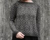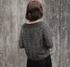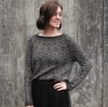 The wearer is 5’10” with a chest circumference of 37”. The sample has been worked in size L, giving the wearer ~7.5” / 19cm of positive ease.