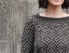 I wanted to create a sense of the barren and sparse landscape of the tundra that inspired Gjeilo’s music whilst also capturing the beautiful and atmospheric music he composed. With this in mind, the colourwork patterns are deliberately sparse themselves, creating patterns from small clusters of stitches worked on alternate rounds. The repeating individual stitches mimic the two-note ostinatos that continue throughout the composition and the flowing shapes created through the larger combined clusters of stitches reflect the more lyrical vocals.