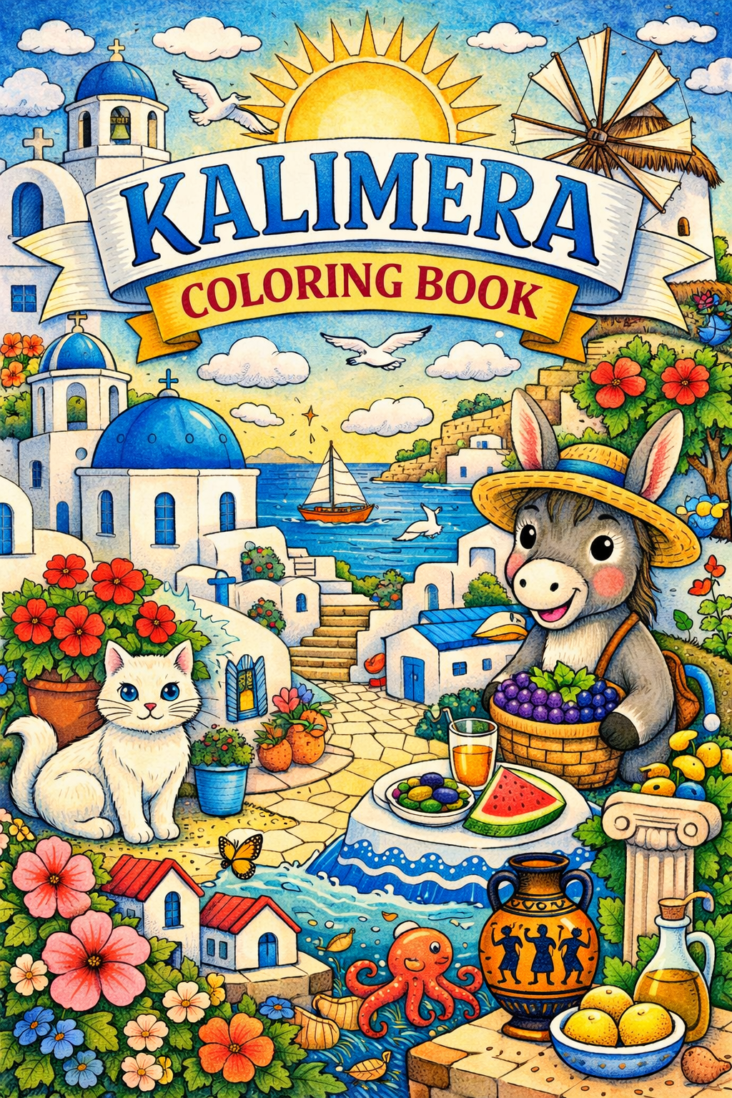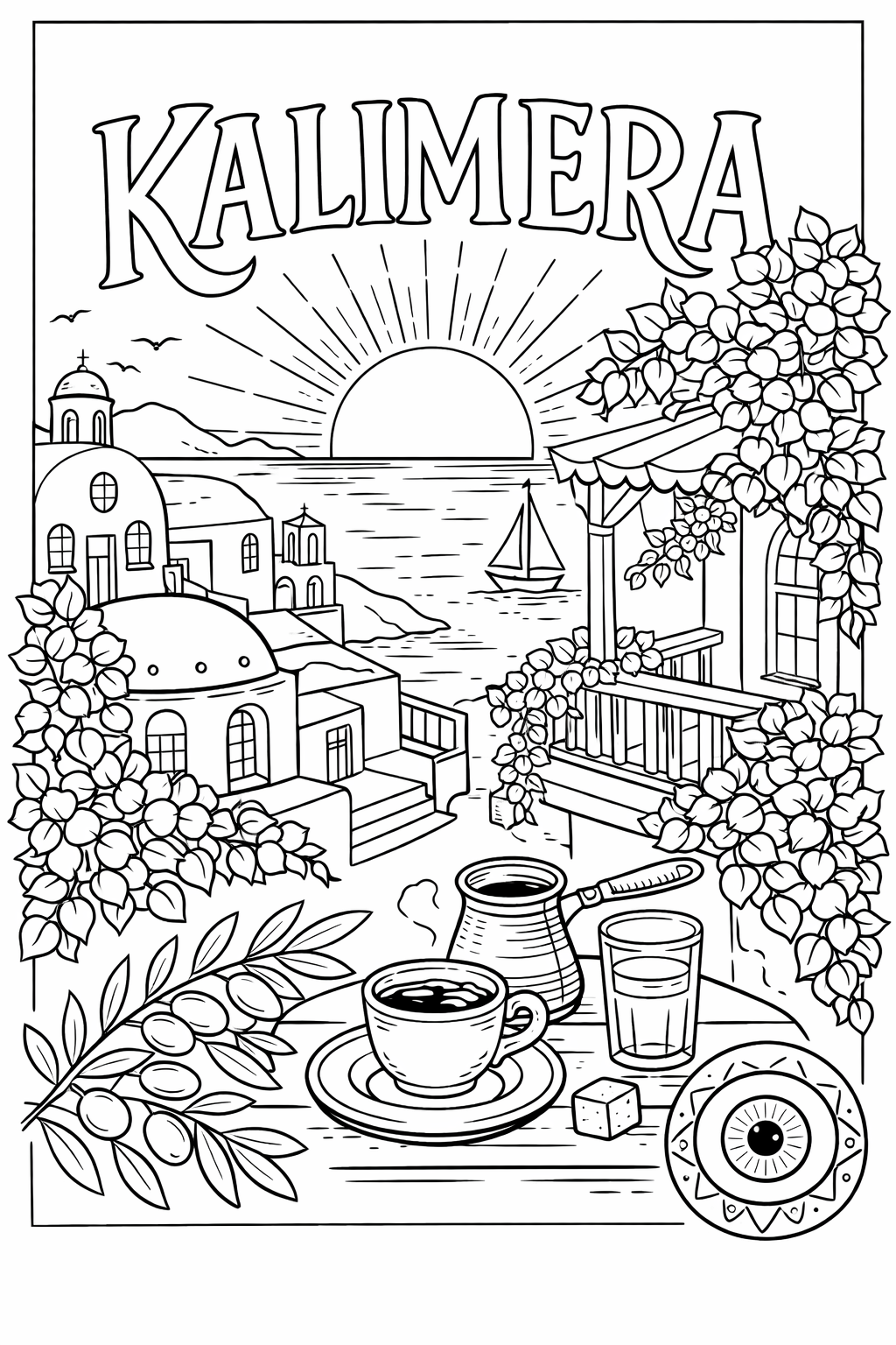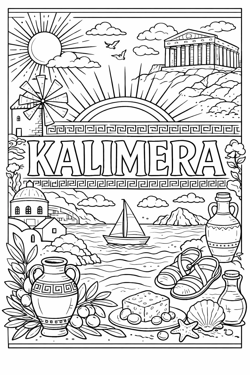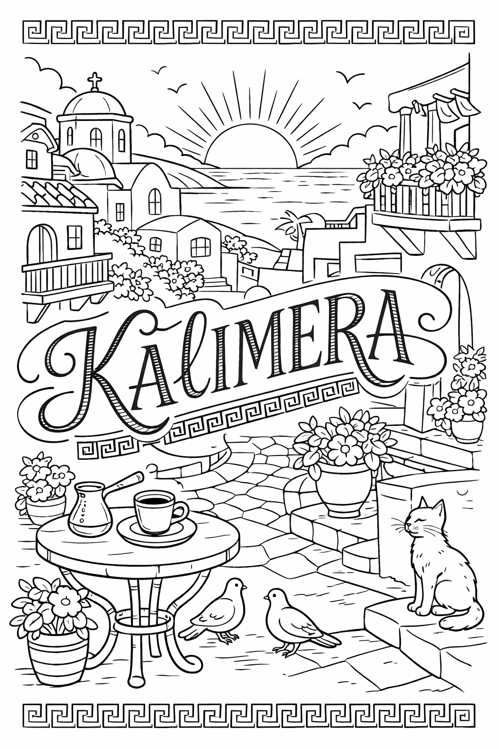 Kalimera (Greece) , 60 designs, coloring ebook, digital printable product, instantly download