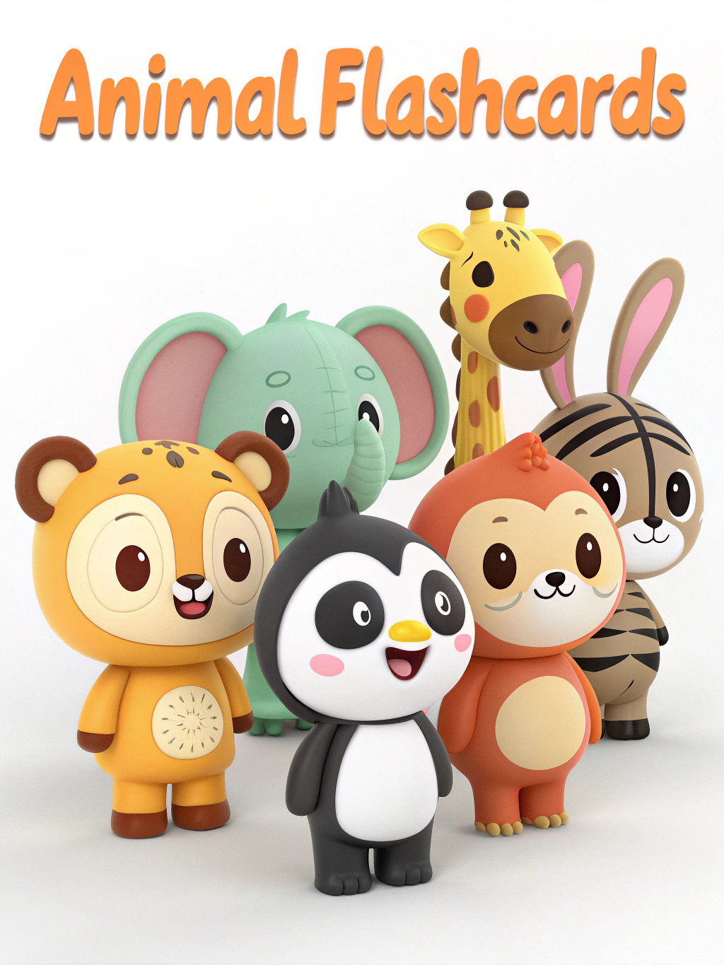 Bring the animal kingdom to life with our 3D Animal Flash Cards! Each card features a vibrant, cartoon-style 3D animal-centered on a crisp white background, designed to captivate young learners and educators alike. From roaring lions to playful pandas, every illustration bursts with personality, featuring bold colors, expressive poses, and intricate details that spark curiosity.