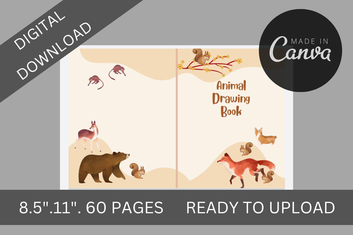 INTERIOR+COVER FOR ANIMAL DRAWING BOOK KDP, CUSTOMIZABLE KDP, KDP LINED PAPER, WORKSHEET KDP, PLR CONTENT CANVA, PLR RESELL PRINTABLE, KDP KIDS TRACING