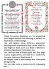 You will receive three different protection blessings with incantations that can be used for any Magickal Book, such as a Book of Shadows, Grimoire, Spellbook, Enchiridion, etc.
