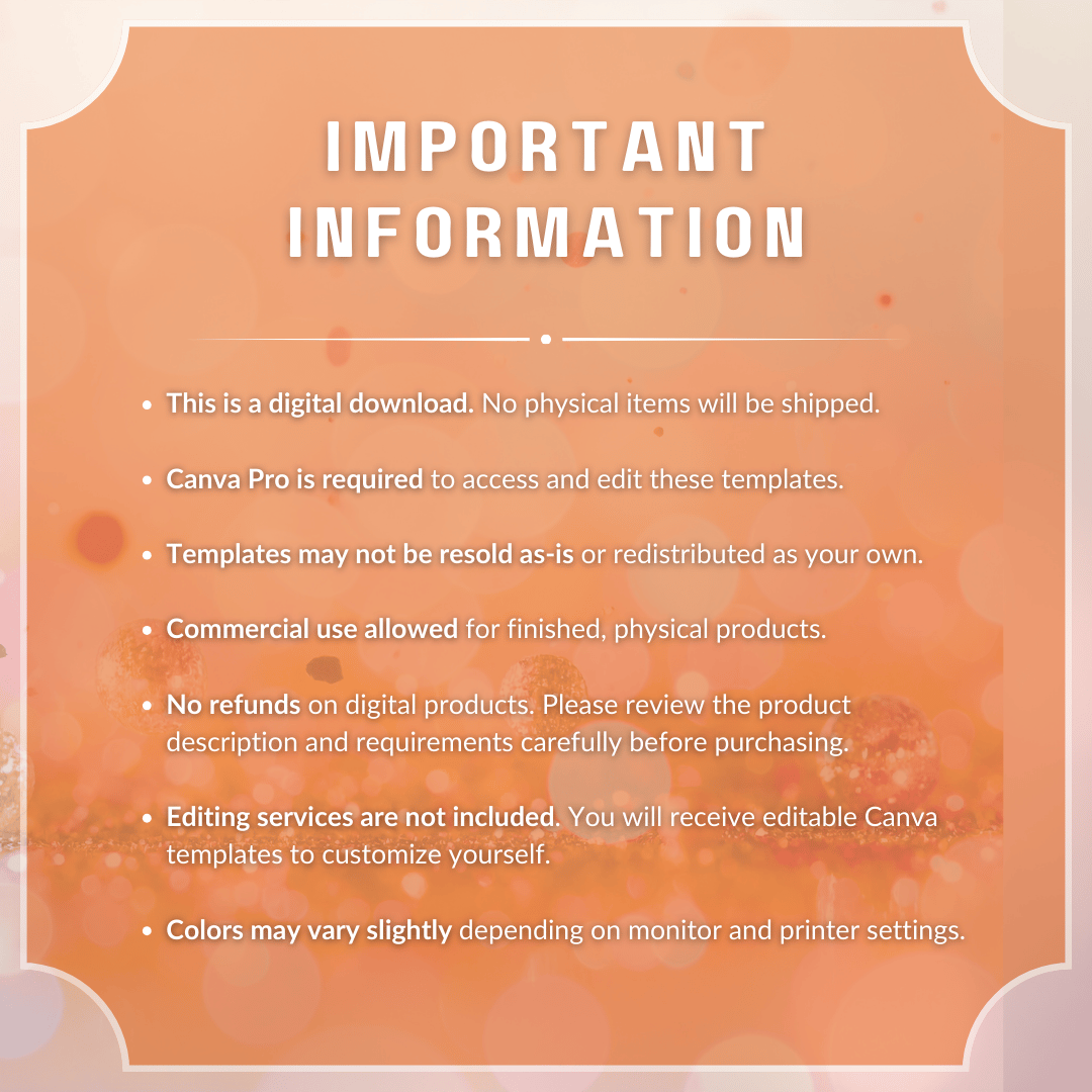 No refunds on digital products. Please review the product description and requirements carefully before purchasing.