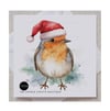 A pack of Ten greetings cards printed with a cute watercolour Robin wearing a Christmas hat.